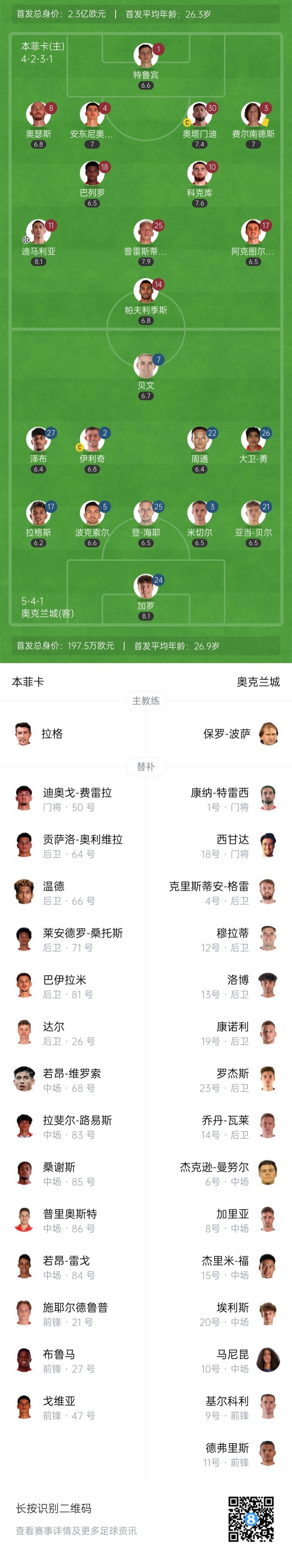 【双方首发及换人信息】