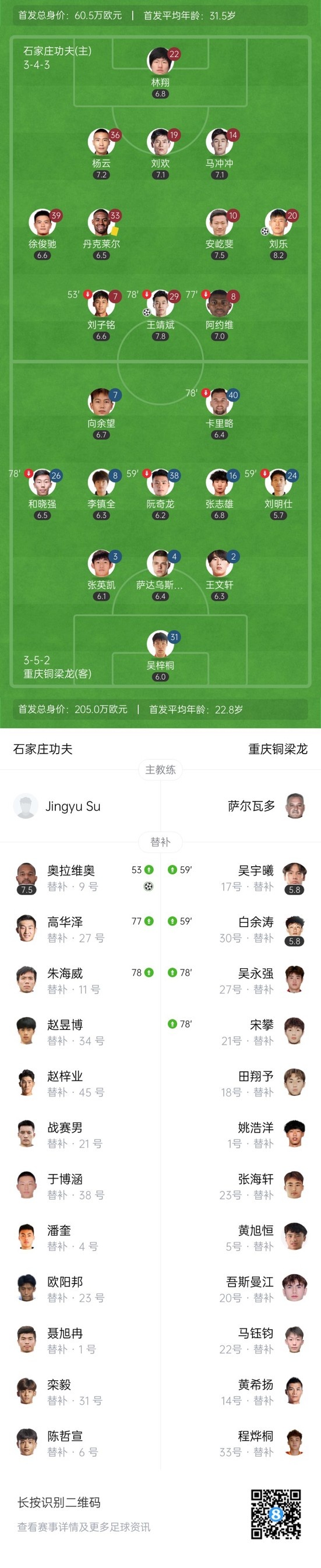 下半场补时8分钟,石家庄功夫3-1重庆铜梁龙。