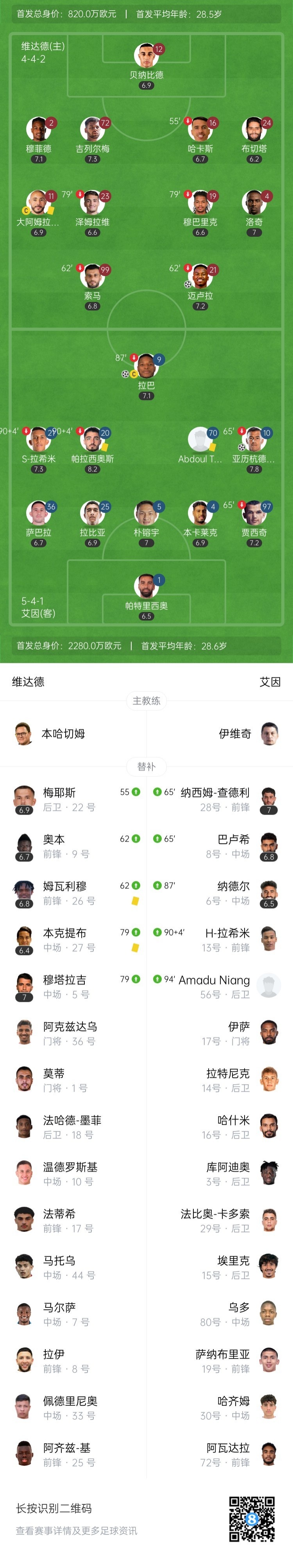 第4分钟,维达德右路进攻,穆菲德右路下底回做禁区,无人盯防的迈卢拉轻松打门得分,维达德1-0领先↓