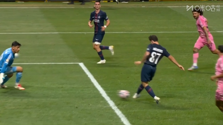 阿什拉夫破门!巴黎4球领先!45+3分钟,维蒂尼亚挑传,巴尔科拉插上倒三角回敲,阿什拉夫跟进推射中框后补射破门,巴黎圣日耳曼4-0迈阿密国际!↓