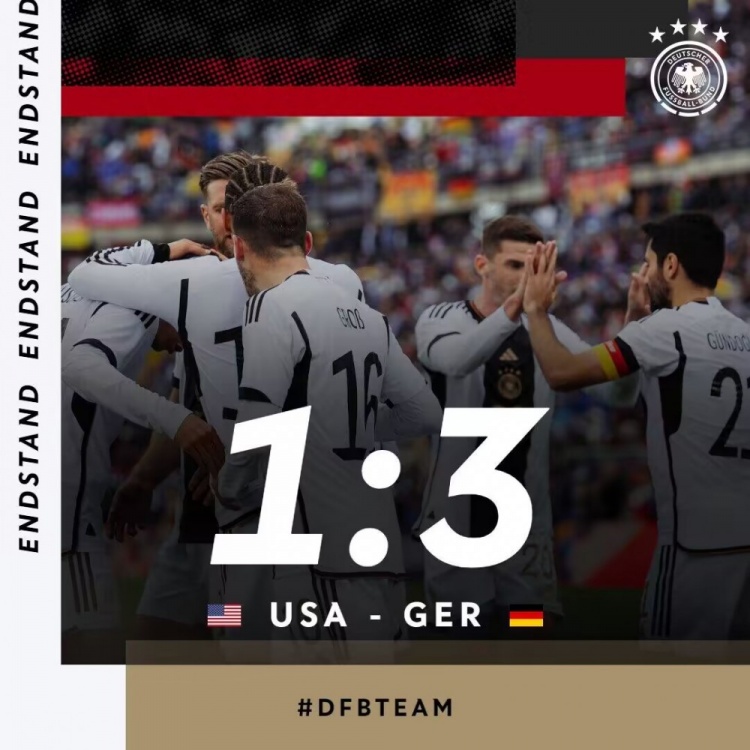 10月15日讯 北京时间10月15日凌晨3点整,2023年国际足球友谊赛展开角逐,美国对阵德国。上半场格罗斯远射中柱,普利西奇一条龙世界波,京多安扳平比分,下半场菲尔克鲁格传射,穆西亚拉破门。最终德国3-1逆转美国,纳格尔斯曼迎来执教国家队开门红。