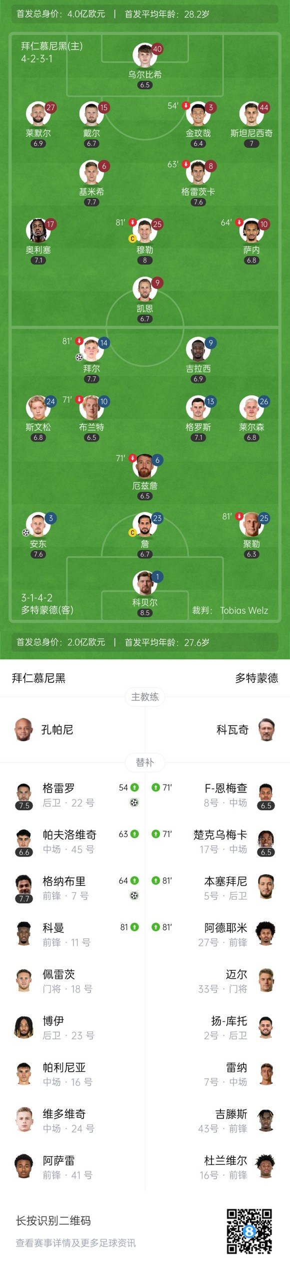 最终,拜仁2-2多特。