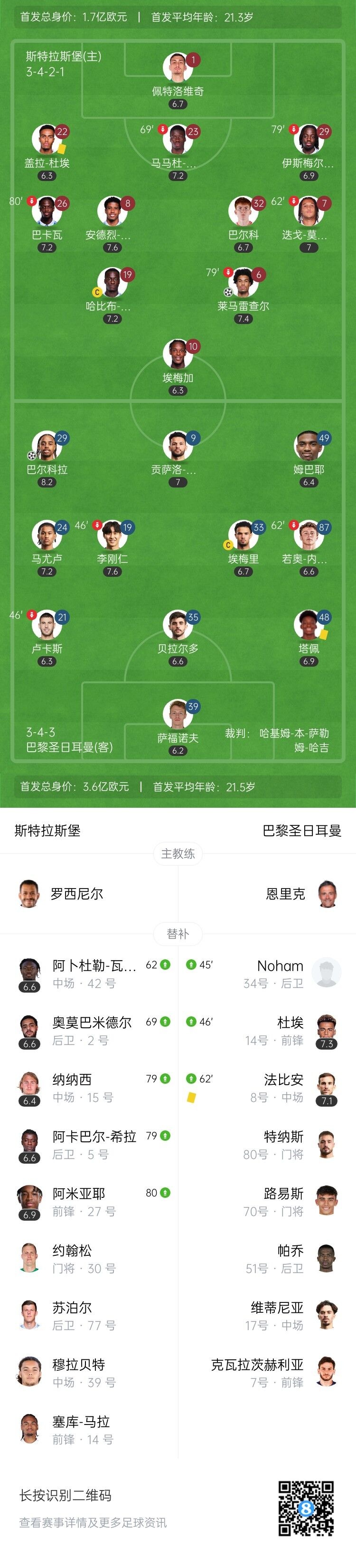 全场比赛结束,巴黎圣日耳曼1-2斯特拉斯堡。