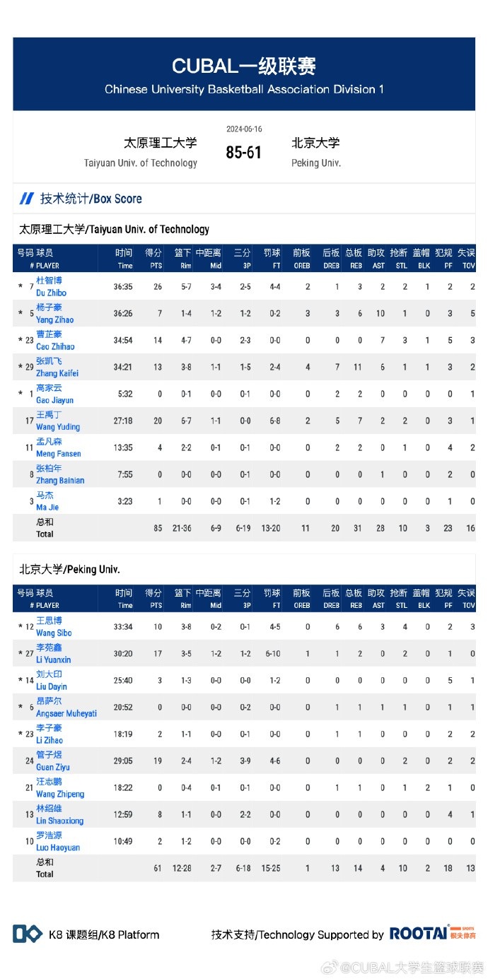 🏀CUBAL-杜智博三分绝杀 太原理工复仇北大&净胜分1分优势进4强