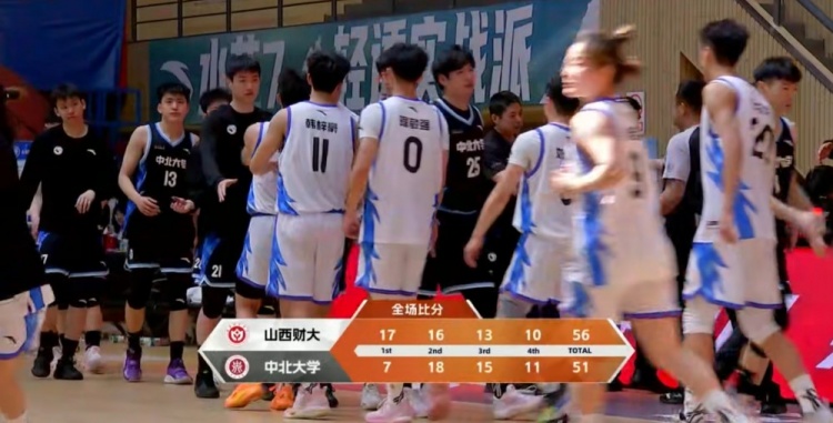 末节比赛,双方在前三分钟的时间里都未能取得运动战进球,只有山西财大通过罚球拿到两分,糟糕的进攻表现让中北大学难以获得逆转比赛的机会,最终山西财大56-51力克中北大学。