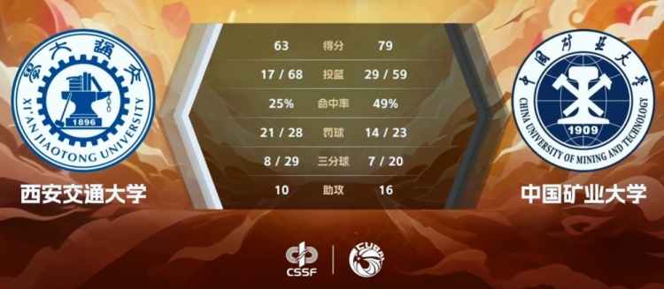 末节之争双方依旧交替拿分拉锯,中国矿大依靠着前三节确立起的两位数优势一直占据上风,西安交大几次推快节奏但始终无法限制对手,末段张雨柔的三分将分别差拉大至15分奠定胜局。最终,中国矿业大学轻取西安交通大学拿下比赛。