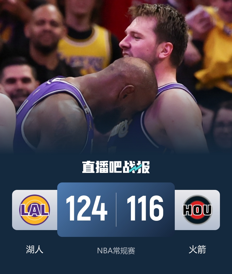 🏀湖人客场再胜火箭迎7连胜 东契奇40+9+10 詹姆斯14中13砍30分