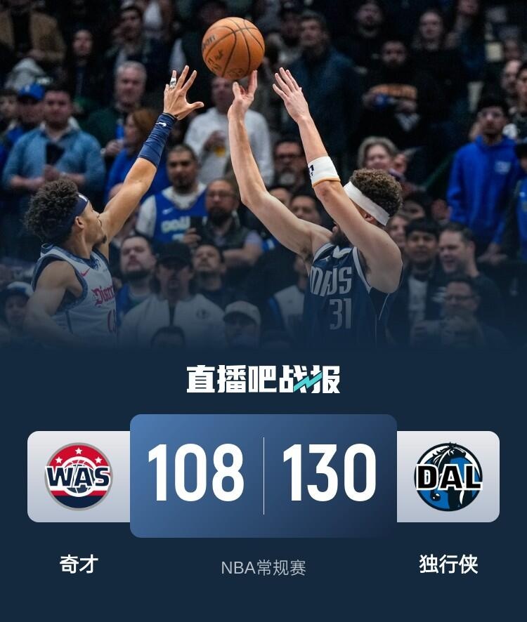 🏀克莱23分+单节7三分 普尔15+6+6 独行侠6人上双送奇才14连败