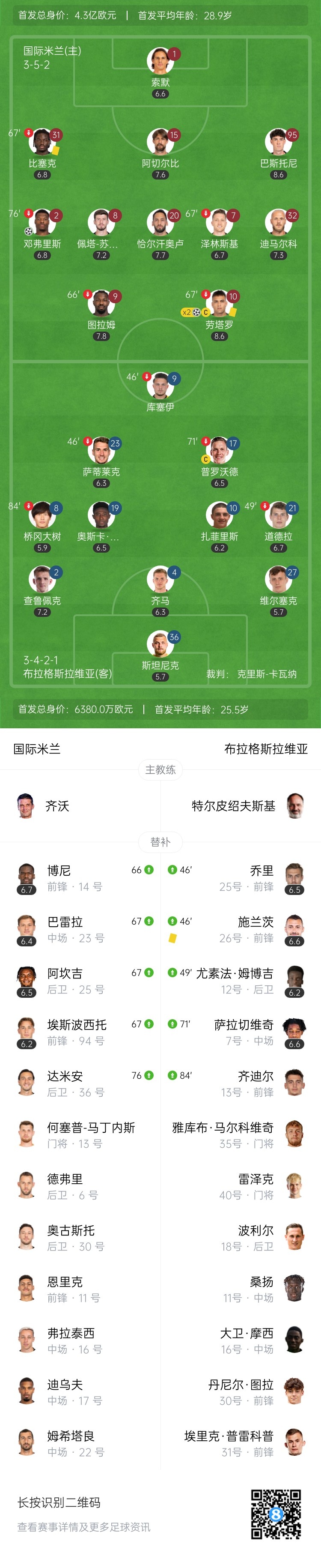 【双方首发以及换人信息】