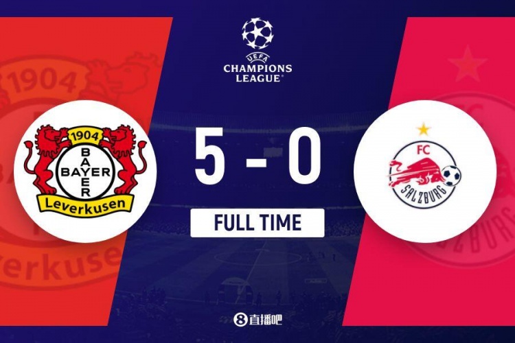 下半场补时2分钟,勒沃库森5-0萨尔茨堡红牛。