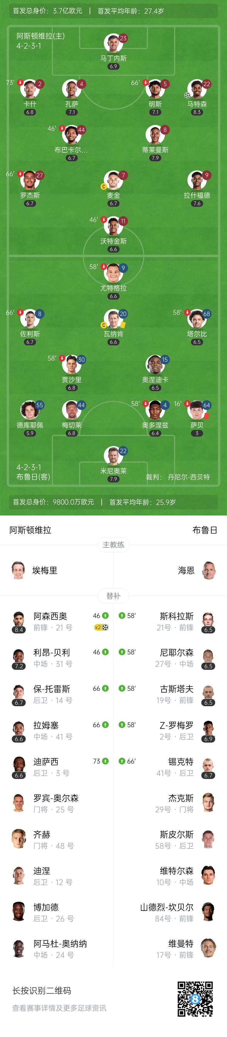 第57分钟,罗杰斯底线附近拉球送出低平球传中,马特森包抄破门!VAR复审后判罚进球有效!维拉2-0领先布鲁日↓