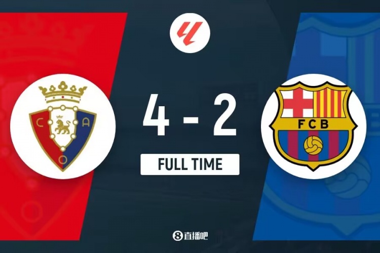 下半场补时7分钟。最终全场比赛结束,奥萨苏纳4-2巴萨。