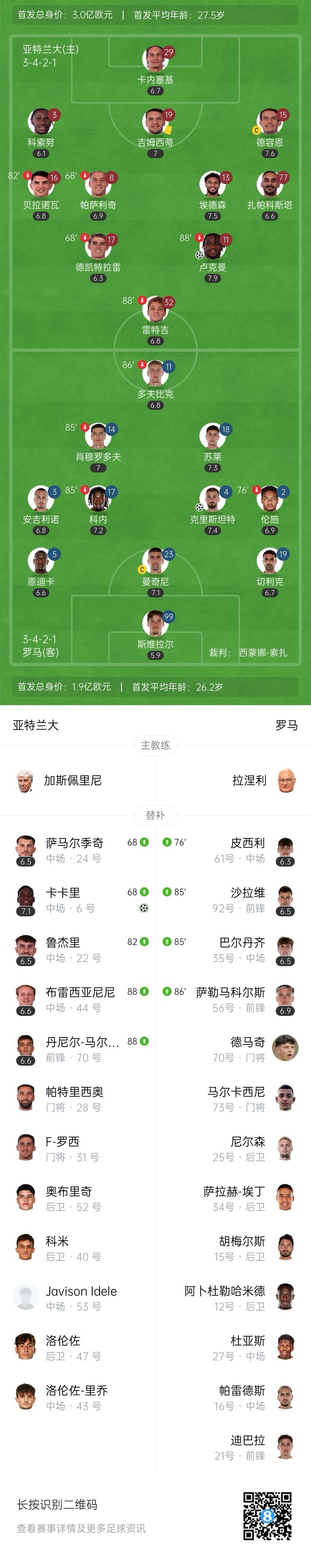 第9分钟,卢克曼禁区左侧接应德凯特拉雷的传球,转身起脚抽射破门,亚特兰大1-0领先!↓