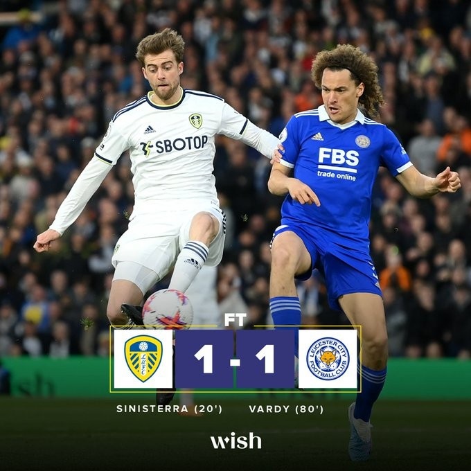 英超-西尼斯特拉泰山压顶瓦尔迪扳平 利兹联1-1莱斯特城排名不变