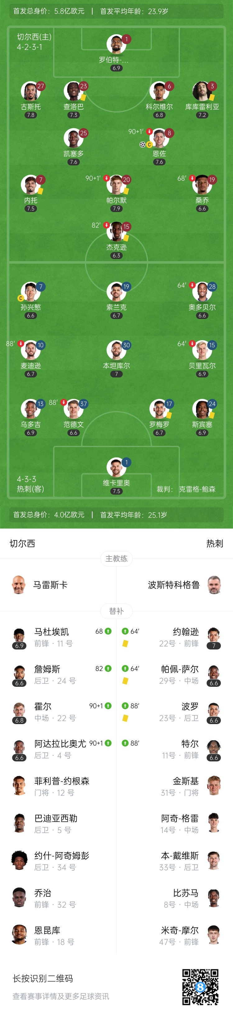 升第4!切尔西1-0送热刺4轮不胜 恩佐头球制胜双方全场共计10黄牌