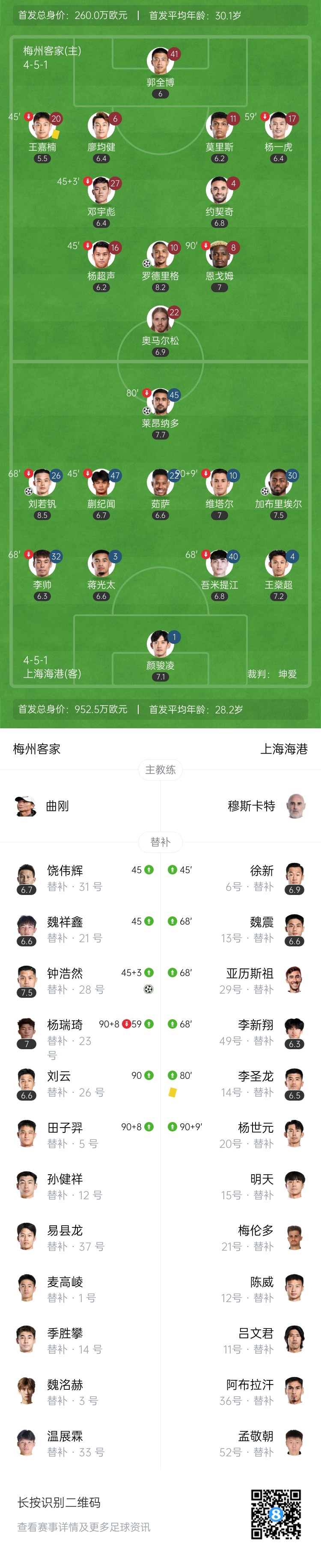 距榜首4分!海港4-2梅州近10轮不败 刘若钒传射梅州近12场不胜
