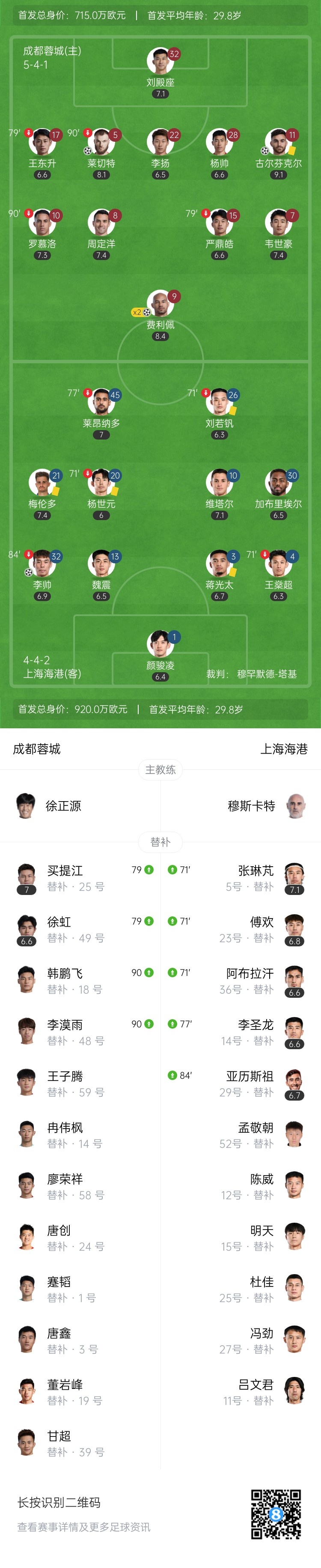 先赛登顶!蓉城4-1双杀海港 终结对手13轮不败 古尔芬克尔独造3球