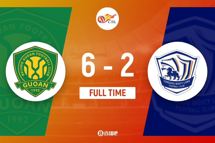 下半场伤停补时3分钟,全场比赛结束,最终北京国安6-2沧州雄狮。