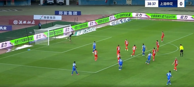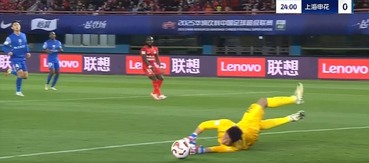 第42分钟,王上源定位球开到禁区,鲍亚雄出击失误造成申花禁区内一片乱战,吴曦门线极限解围,后续阿奇姆彭左侧得球再传中,迈达纳近距离头槌破门!VAR介入后确认进球有效,河南主场1-0领先↓