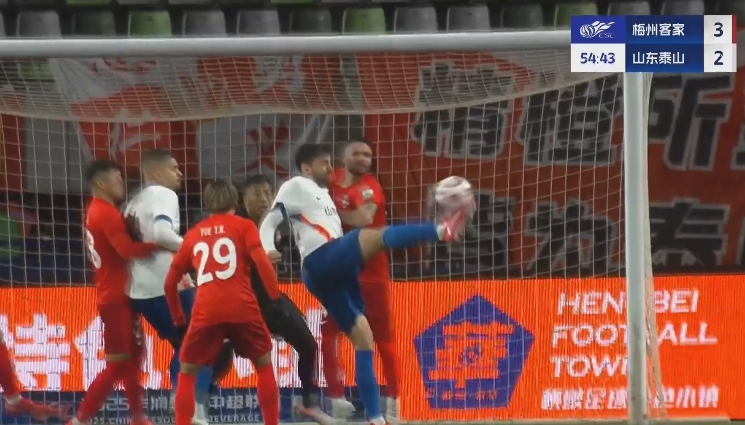 半场战罢,梅州客家暂3-1山东泰山。