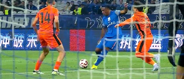 第61分钟,申花后场长传球路易斯头球摆渡马纳法门前跟上抽射被门将扑出,第二点补射打高了。↓
