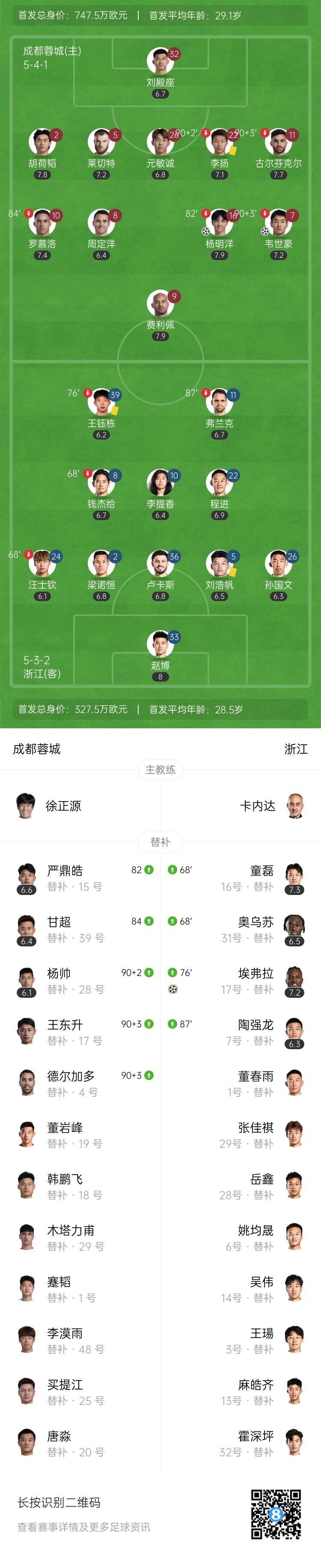 先赛3分领跑!蓉城2-1浙江取4连胜 韦世豪联赛第4球杨明洋处子球