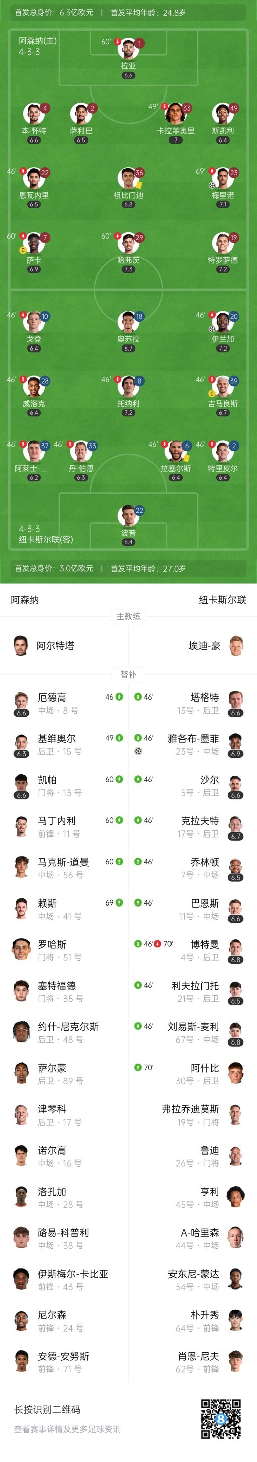 双方首发以及换人信息:
