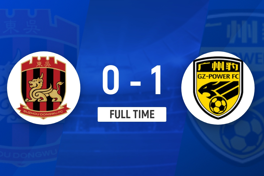 全场比赛结束,苏州东吴0-1不敌广州豹。
