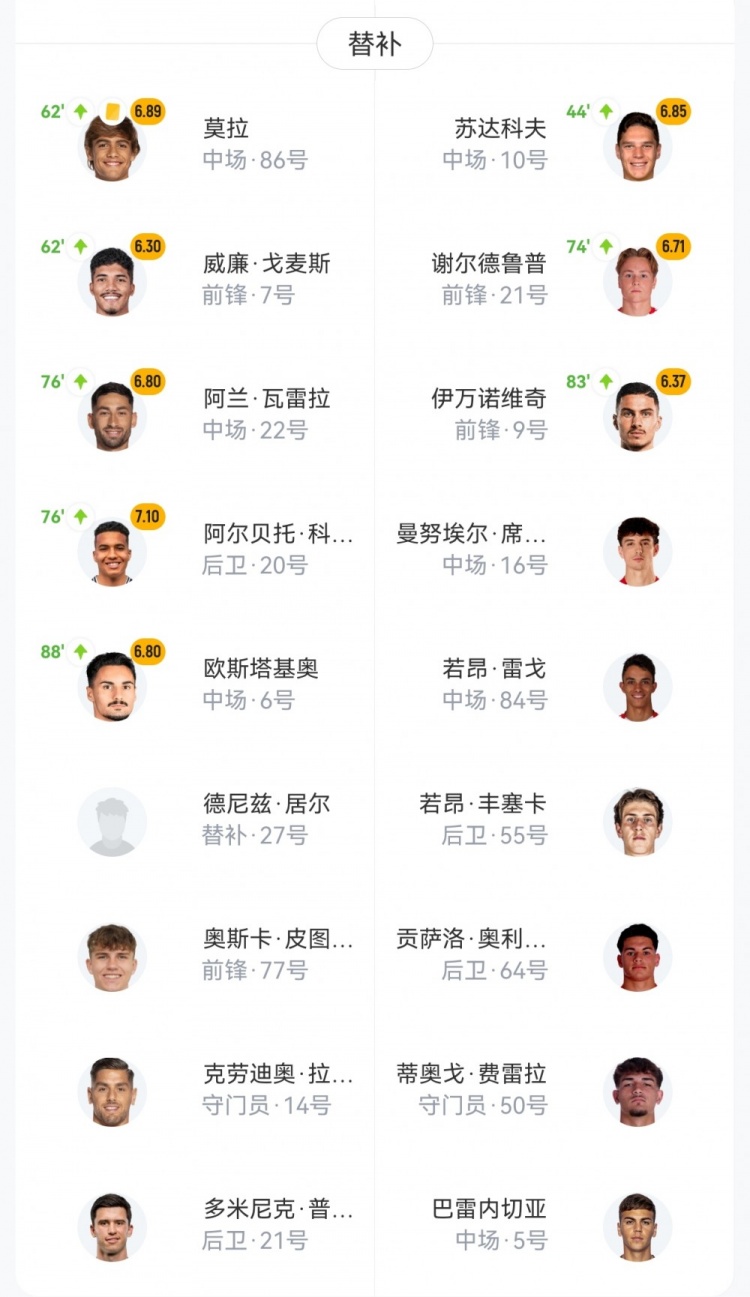 第68分钟,阿劳霍拉拽奥莫罗迪翁染黄↓