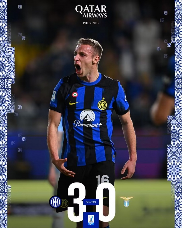 意超杯-国米3-0拉齐奥进决赛 国米攻门超20脚蓝鹰全场0射正