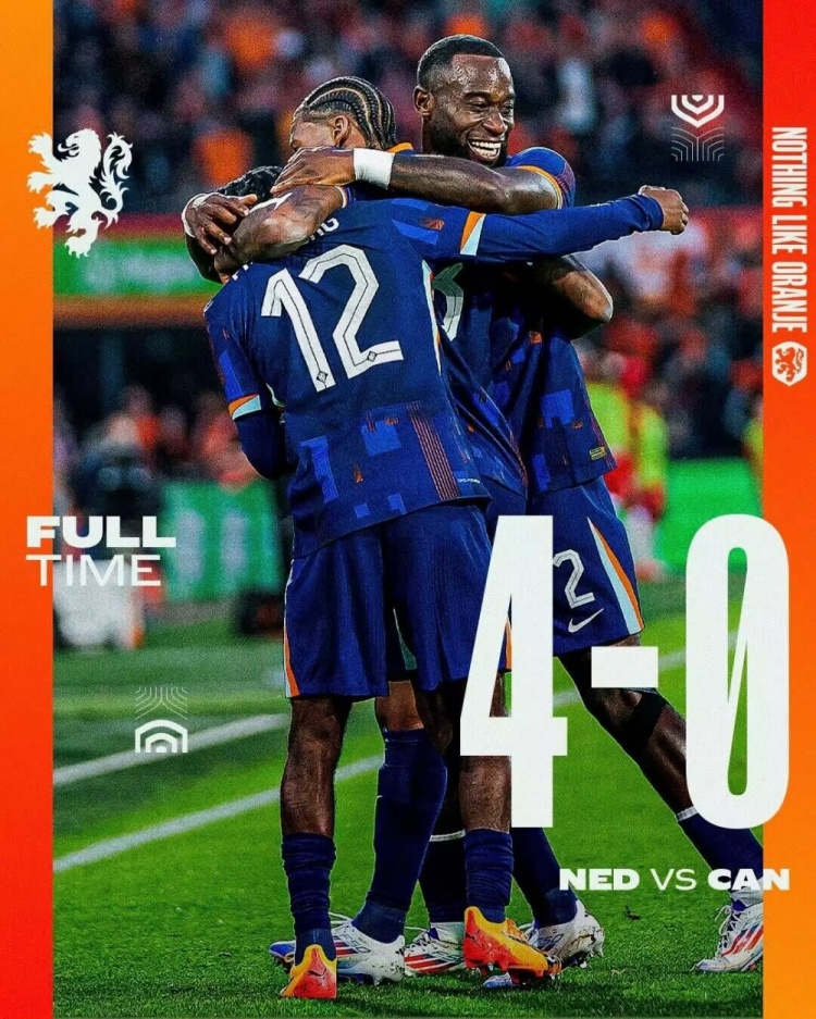 全场比赛结束,荷兰4-0加拿大。