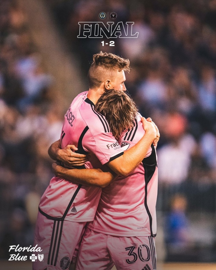 伤停补时8分钟。全场比赛结束, 费城联合2-1迈阿密国际。