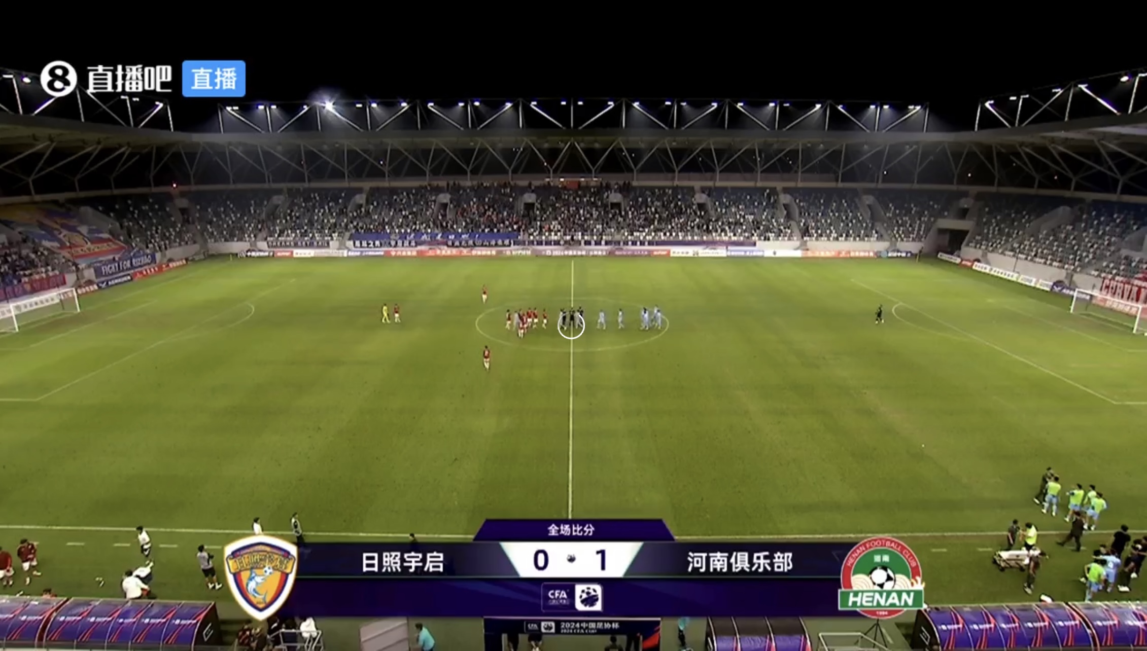 上半场补时3分钟,日照宇启0-0河南队。
