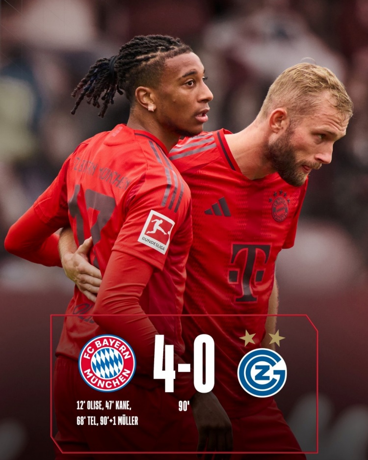 友谊赛-奥利斯打入拜仁生涯首球凯恩&特尔&穆勒破门 拜仁4-0草蜢