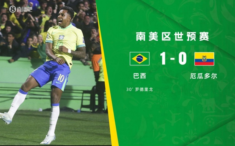9月7日讯 北京时间9月7日9点,世预赛南美区第7轮,巴西对阵厄瓜多尔。上半场,罗德里戈远射破门,补时阶段阿利森扑出凯塞多的单刀。下半场,巴西多次制造威胁但未能再破门。全场比赛结束,巴西1-0厄瓜多尔。