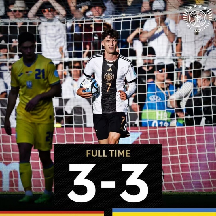 全场比赛结束,德国3-3乌克兰。
