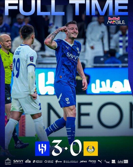 3分钟2球!米林替补建功!第85分钟,马尔科姆主罚角球传中,米林科维奇抢点甩头攻门得分,利雅得新月3-0阿尔加拉法!↓