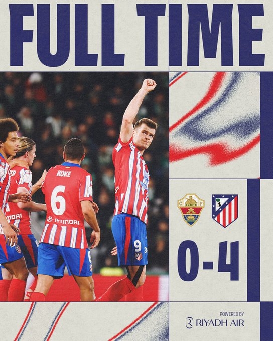 15连胜!马竞4-0埃尔切进国王杯8强 索尔洛特双响小蜘蛛替补建功