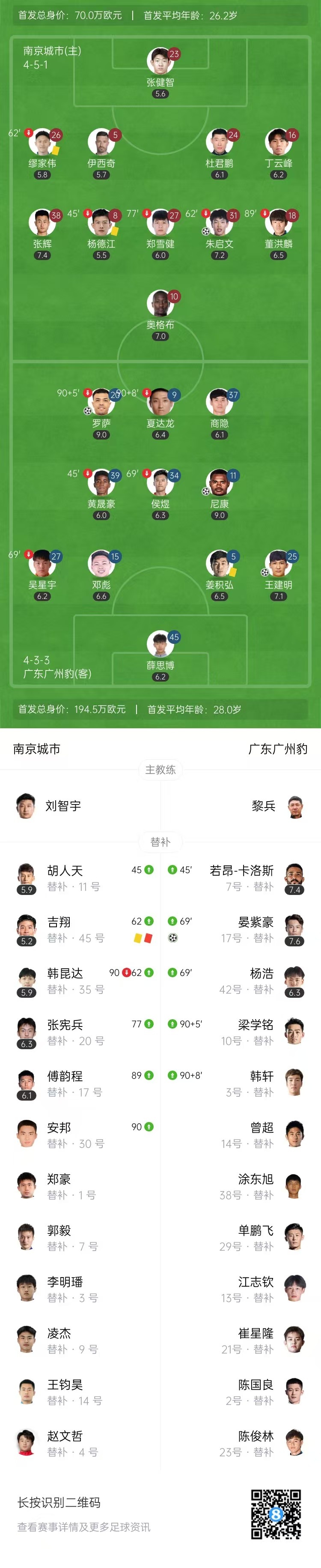 第90+9分钟,王建明连续两个转身杀入禁区后小角度抽射锁定胜局,广东广州豹4-2南京城市。↓