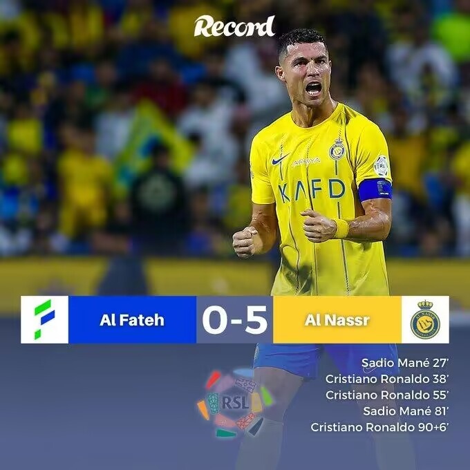 沙特联-C罗戴帽+妙传助攻马内双响 利雅得胜利5-0哈萨征服获联赛首胜
