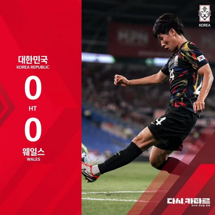 上半场没有补时,威尔士0-0韩国。