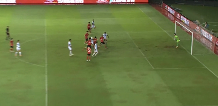 第41分钟,南京城市左侧大禁区线上的远射被门将扑出,后门柱埋伏的吴兴涵轻松补射破门,但边裁举旗示意越位在先进球无效↓