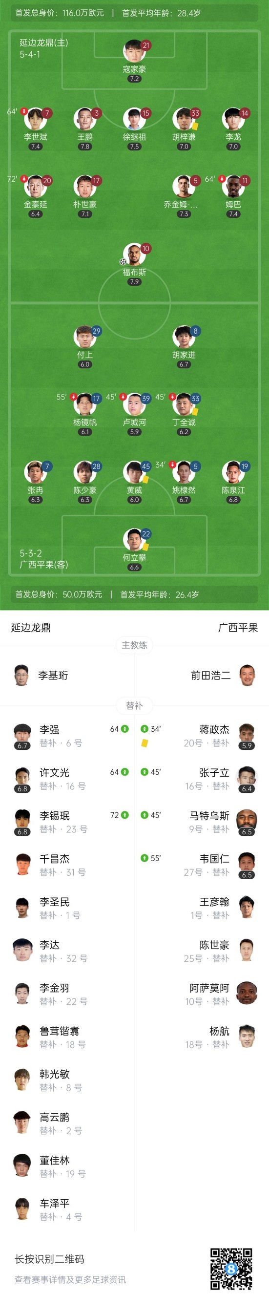 第3分钟,延边闪击得手!姆巴前场左路抢断成功后横传点球点附近福布斯推射破门,延边龙鼎1-0广西平果。↓